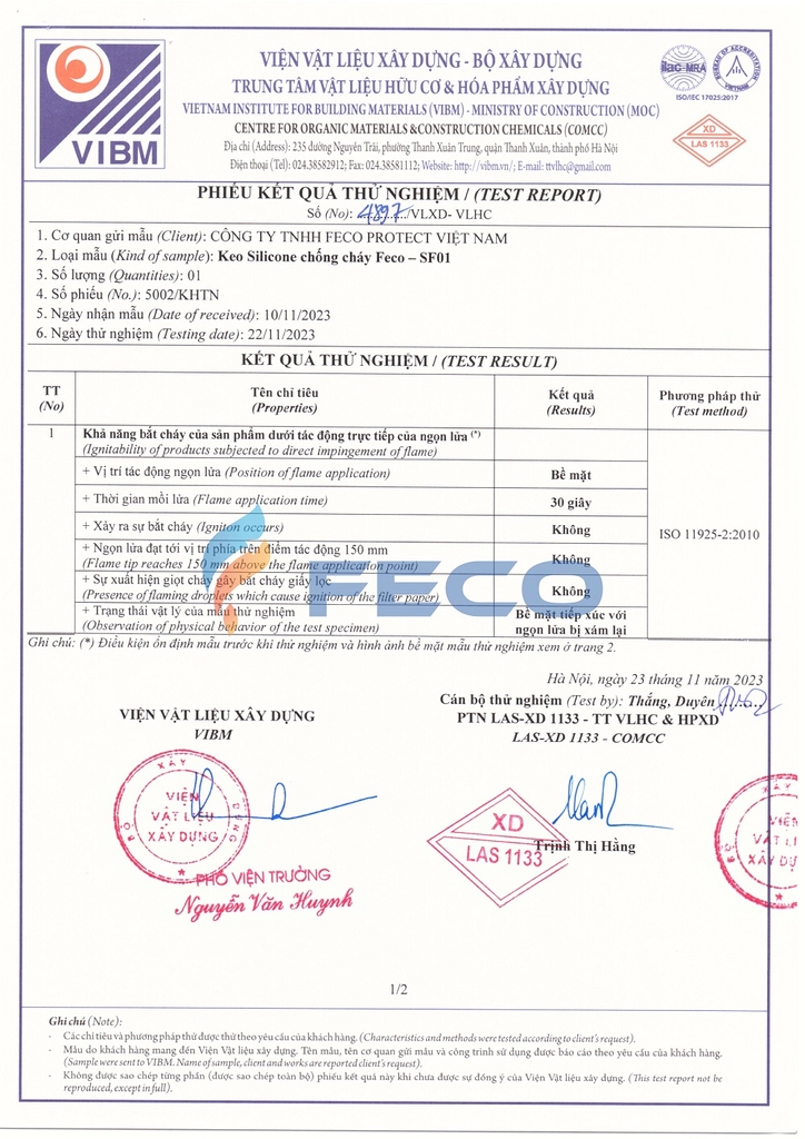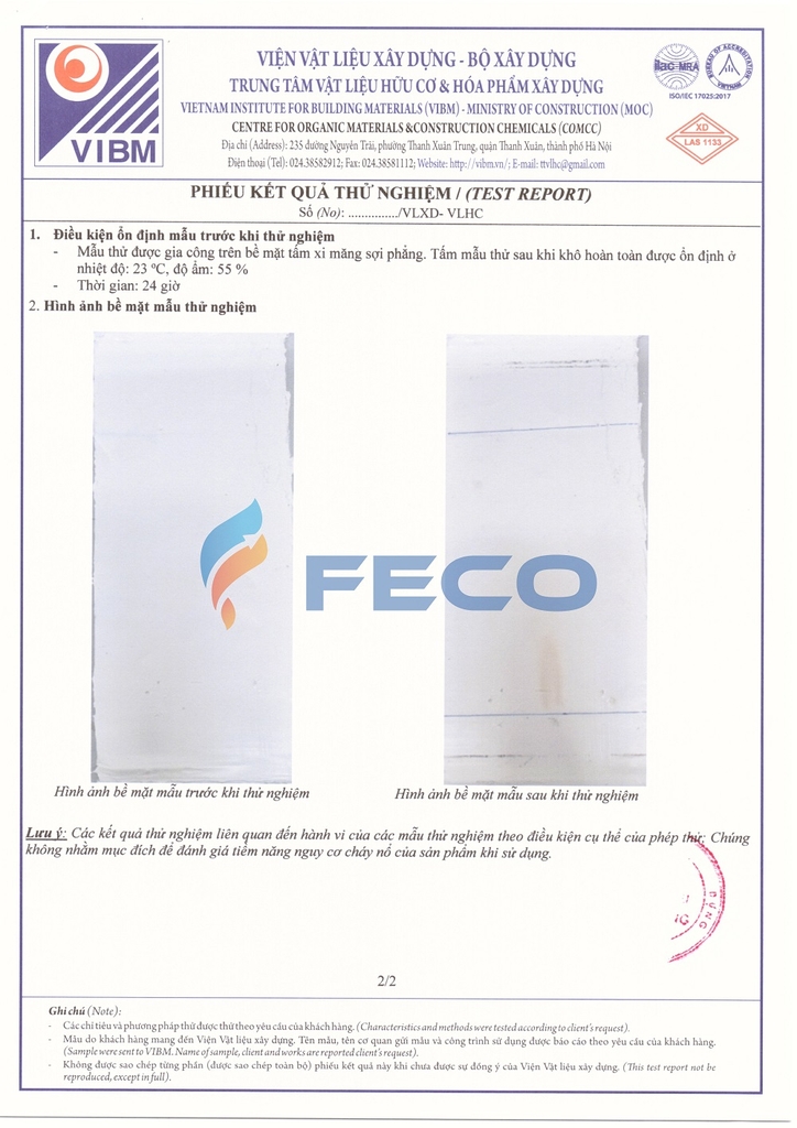 Kết quả đốt mẫu thử nghiệm của Trung Tâm Vật Liệu Hữu Cơ và Hóa Phẩm Xây Dựng - VIỆN VẬT LIỆU XÂY DỰNG - BỘ XÂY DỰNG