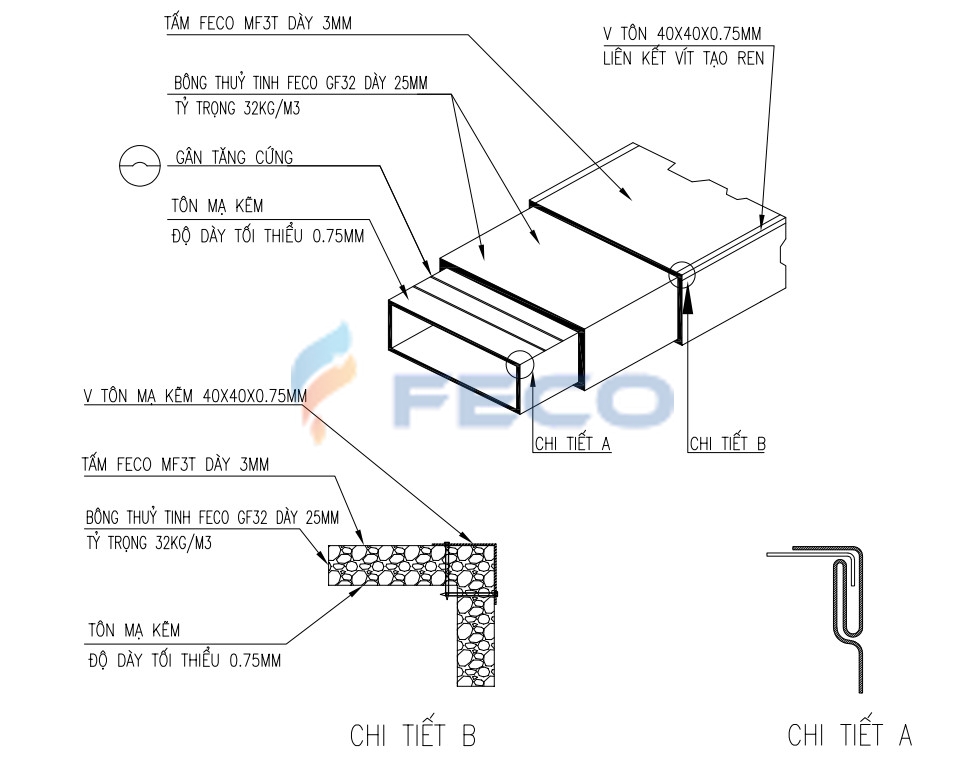– Tấm được làm chủ yếu bằng magie oxit, MgSO4, đá trân châu và sợi gỗ. Để gia cường FECO sử dụng lưới sợi thủy tinh chất lượng cao trong tấm đảm bảo khả năng chống cháy, chịu lực...