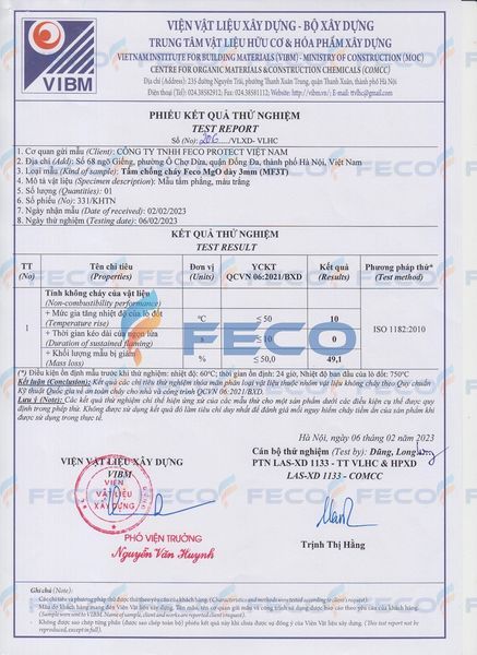 Với khả năng chống cháy đặc biệt, nhẹ, chịu nước, chịu nhiệt, không bị ăn mòn, phù hợp với khí hậu nhiệt đới. Bề mặt láng mịn và màu sắc dễ sử dụng trong các không gian khác nhau. Tấm FECO MF5T được công ty Firetek thử nghiệm thành công cho bọc ống gió chống cháy EI60 tại trung tâm nghiên cứu ứng dụng khoa học kỹ thuật PCCC – Trường đại học PCCC.
