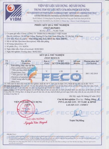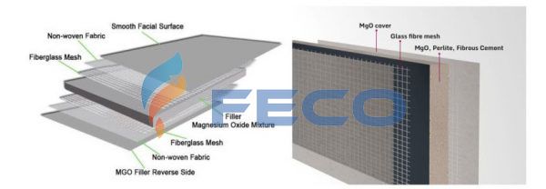 – Tấm được làm chủ yếu bằng magie oxit, MgSO4, đá trân châu và sợi gỗ. Để gia cường FECO sử dụng lưới sợi thủy tinh chất lượng cao trong tấm đảm bảo khả năng chống cháy, chịu lực...